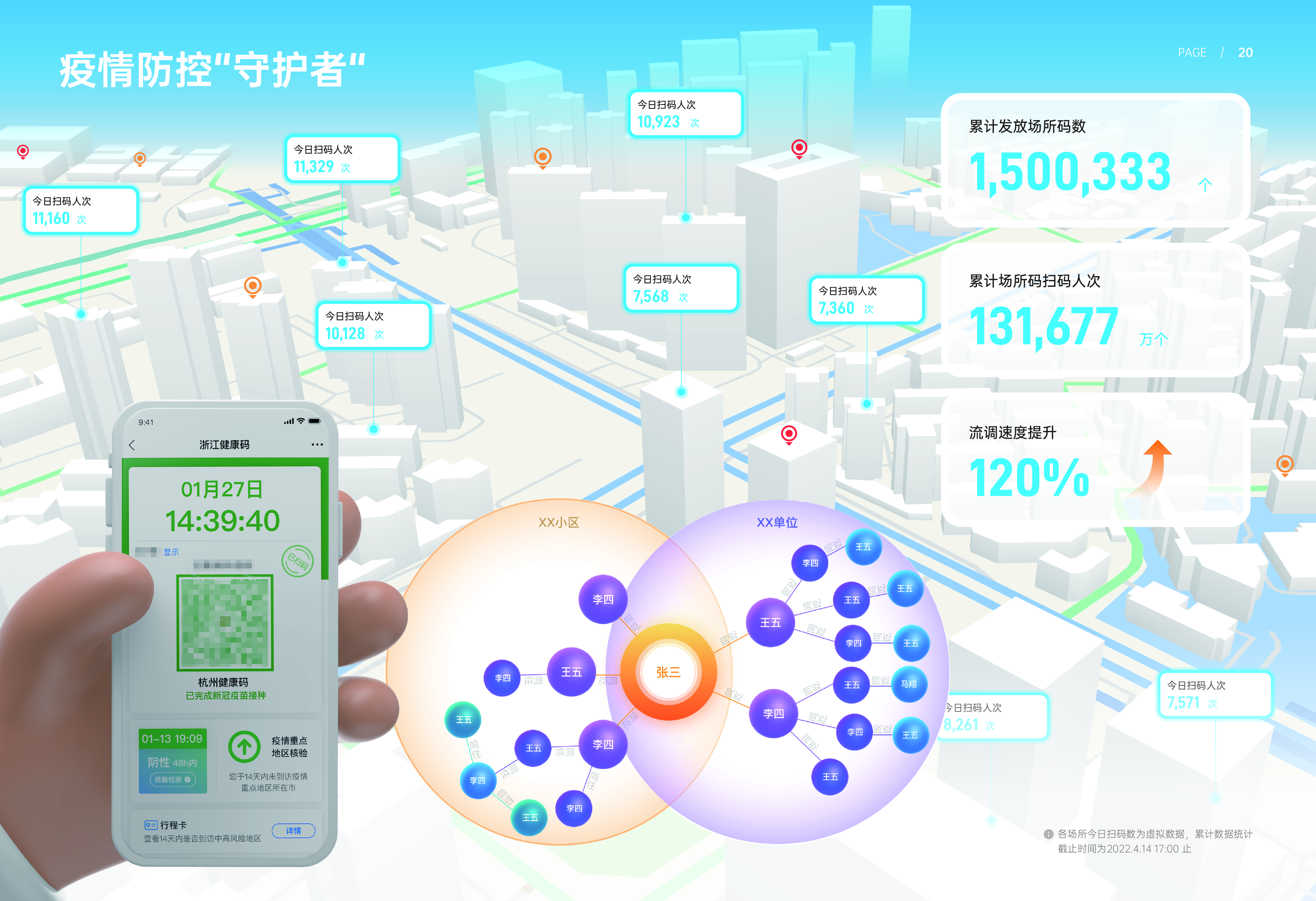 近期,浙江省防控工作新聞發(fā)布會(huì)上表明,從3月3日開(kāi)始,浙江爆發(fā)了新冠肺炎疫情防控常態(tài)化以來(lái)波及范圍最廣、形勢(shì)最為復(fù)雜的一輪疫情,經(jīng)過(guò)各地各部門(mén)和全社會(huì)共同努力,浙江疫情形勢(shì)總體平穩(wěn),未造成廣泛社區(qū)傳播和外溢。據(jù)統(tǒng)計(jì),浙江省本輪總計(jì)252起疫情中,222起在1天內(nèi)實(shí)現(xiàn)社會(huì)面清零,90%以上的疫情在3天內(nèi)實(shí)現(xiàn)社會(huì)面清零。疫情防控阻擊戰(zhàn)階段勝利,離不開(kāi)一線防疫人員堅(jiān)守行動(dòng),同時(shí)也離不開(kāi)大數(shù)據(jù)科技工具的強(qiáng)力支撐。在全面堅(jiān)持“外防輸入、內(nèi)防反彈”總策略和“動(dòng)態(tài)清零”總方針指導(dǎo)下,杭州城市大腦技術(shù)與服務(wù)有限公司(數(shù)字杭州)承建開(kāi)發(fā)的“杭州場(chǎng)所碼與疫情溯源流調(diào)系統(tǒng)”,一直跟隨著抗疫一線業(yè)務(wù)需求迭代升級(jí),從3000QPS的健康碼鏈路性能保障,到25000QPS的市民健康碼亮碼健康度提升;從杭州場(chǎng)所碼綠碼通行,到場(chǎng)所碼“四碼一屏”支持查看48小時(shí)核酸采樣;從群眾主動(dòng)掃碼,到面向“一老一小”的反向幫掃;從單一靜態(tài)信息展示,到多渠道應(yīng)用同屏動(dòng)態(tài)呈現(xiàn);從承載千萬(wàn)級(jí)并發(fā)量,到智能算法模型支撐城市活力指數(shù)精細(xì)化計(jì)算……數(shù)字杭州團(tuán)隊(duì)始終以打造“杭州特色”硬核應(yīng)用為使命,深度參與梳理防疫一線隊(duì)伍的智能化治理需求,充分發(fā)揮建設(shè)杭州市級(jí)一體化平臺(tái)的實(shí)戰(zhàn)經(jīng)驗(yàn),為杭州場(chǎng)所碼與流調(diào)排查系統(tǒng)注入核心戰(zhàn)斗力。