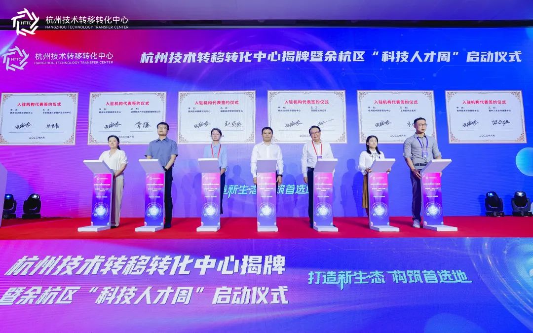 6月5日上午,杭州技術(shù)轉(zhuǎn)移轉(zhuǎn)化中心(以下簡稱“杭轉(zhuǎn)中心”)揭牌儀式暨余杭區(qū)“科技人才周”啟動儀式在杭州師范大學(xué)科技園順利舉行。杭州市政府副秘書長沈凱波,杭州市科技局局長樓秀華,城西科創(chuàng)大走廊管委會黨工委委員、管委會副主任施黃凱,杭州市委人才辦副主任尹凡,杭州市科技局副局長樓立群,杭州市科技局副局長鄧崢,余杭區(qū)委常委、組織部長張立,余杭區(qū)副區(qū)長羅建強(qiáng),臨安區(qū)委常委、副區(qū)長陳立群,西湖區(qū)副區(qū)長俞暉,杭州資本黨委委員、副總經(jīng)理、杭州科創(chuàng)集團(tuán)董事長、杭州技術(shù)轉(zhuǎn)移轉(zhuǎn)化中心董事長許寧出席并揭牌。