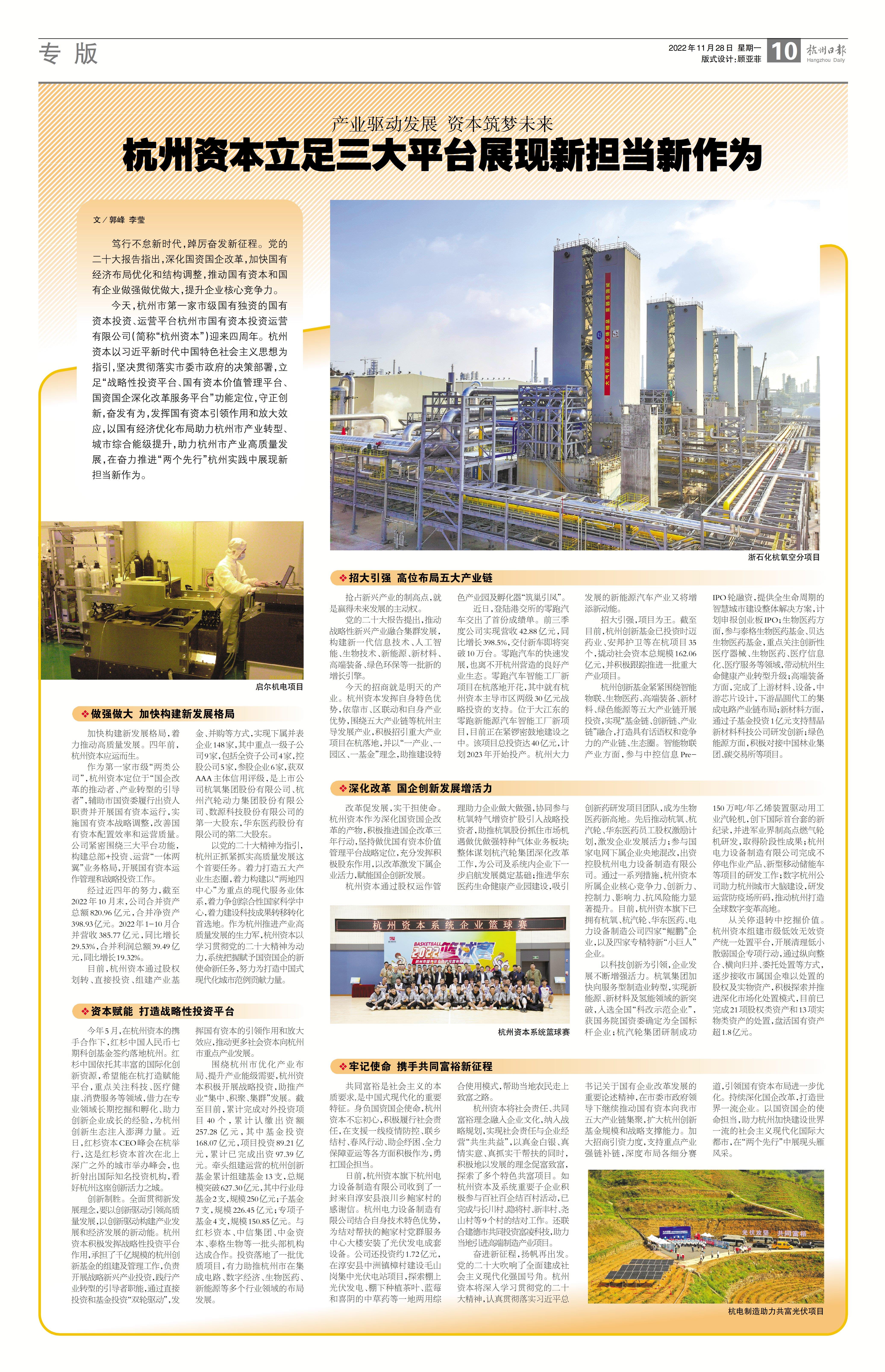 11月28日,在公司成立四周年之際,杭州日報(bào)A10版對(duì)杭州資本進(jìn)行了題為“產(chǎn)業(yè)驅(qū)動(dòng)發(fā)展 資本筑夢未來杭州資本立足三大平臺(tái)展現(xiàn)新?lián)?dāng)新作為”的專版宣傳。